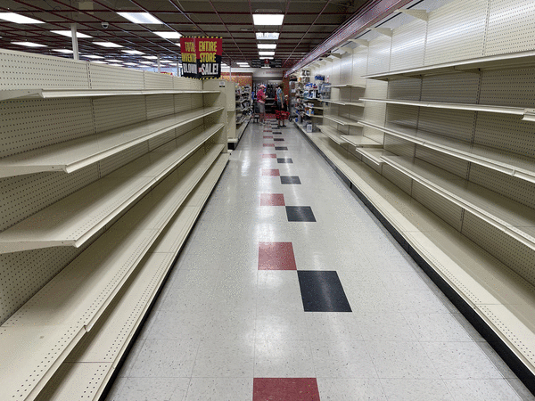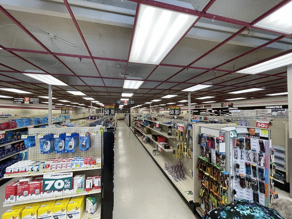 Though the store had briefly served as a repository for merchandise from other closing stores, but heavy discounts had reduced the inventory to a kind of parody of the 20 century drugstore: Shabby Christmas and Easter decorations, reading glasses, bed pans, glucose meters, Geritol, tick spray, phone chargers, cheap umbrellas and even cheaper sunglasses.