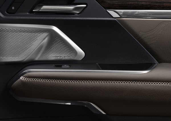 Restrained exterior styling gives way to an exuberant cabin. Designers specified wide-stitched Woodland Mahogany leather seats with embossed topographical maps on their backs. Layers of stitched dash materials, real walnut veneers, and unique floor mats should be relished. Slide under the dual-panel sunroof, crank up the 16-speaker Bose audio system, and caress the sueded headliner. Don’t forget to select heated, ventilated and massaging front seats. Grip the heated steering wheel.