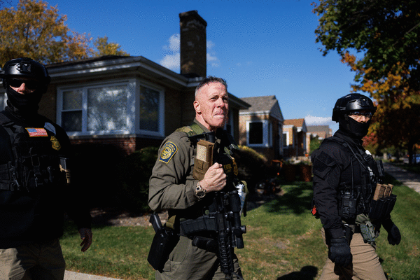 On the video, Bovino is asked about an Oct. 3 arrest he made involving a man protesting outside the Broadview facility. According to the complaint, Bovino ordered a man to move down the street after the man told him, “you love to be on television.” As the man started to move, the complaint states, Bovino “stepped across a barrier,” tackled the man and arrested him.