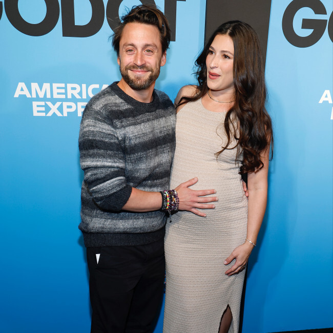 The Succession star's wife Jazz Charton - with whom he already has Kinsey Sioux, six, and four-year-old son, Wilder Wolf - showed off her blossoming baby bump at the opening night of Waiting for Godot on Broadway in New York on Sunday night (28.09.25).