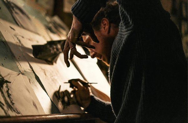 He tries turning to work for a distraction, but the drawings he creates are of the decidedly macabre variety.
