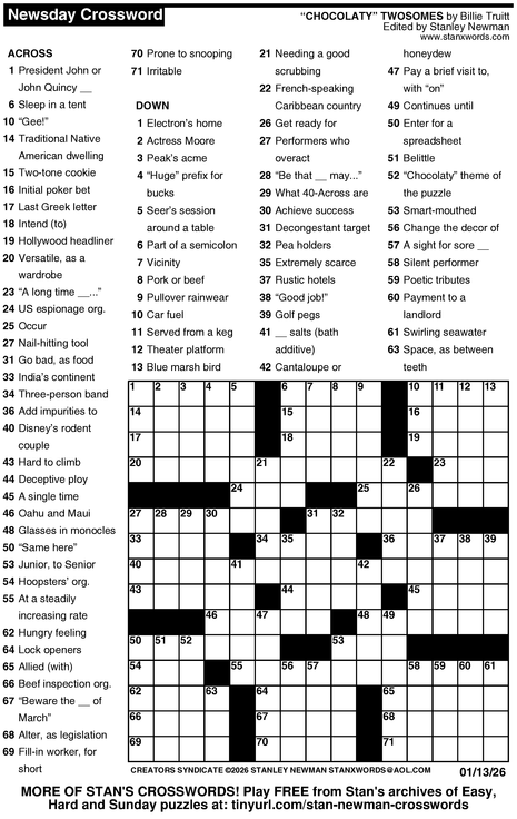 Crossword for 1/13/2026