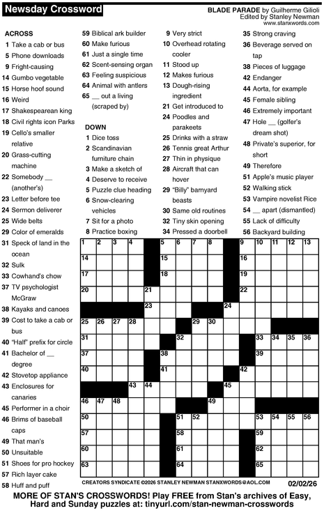 Crossword for 2/2/2026