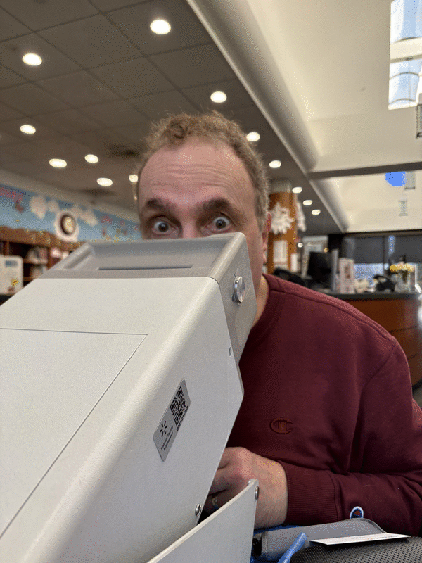 “Put on your readers and look into the machine,” Andy instructed.