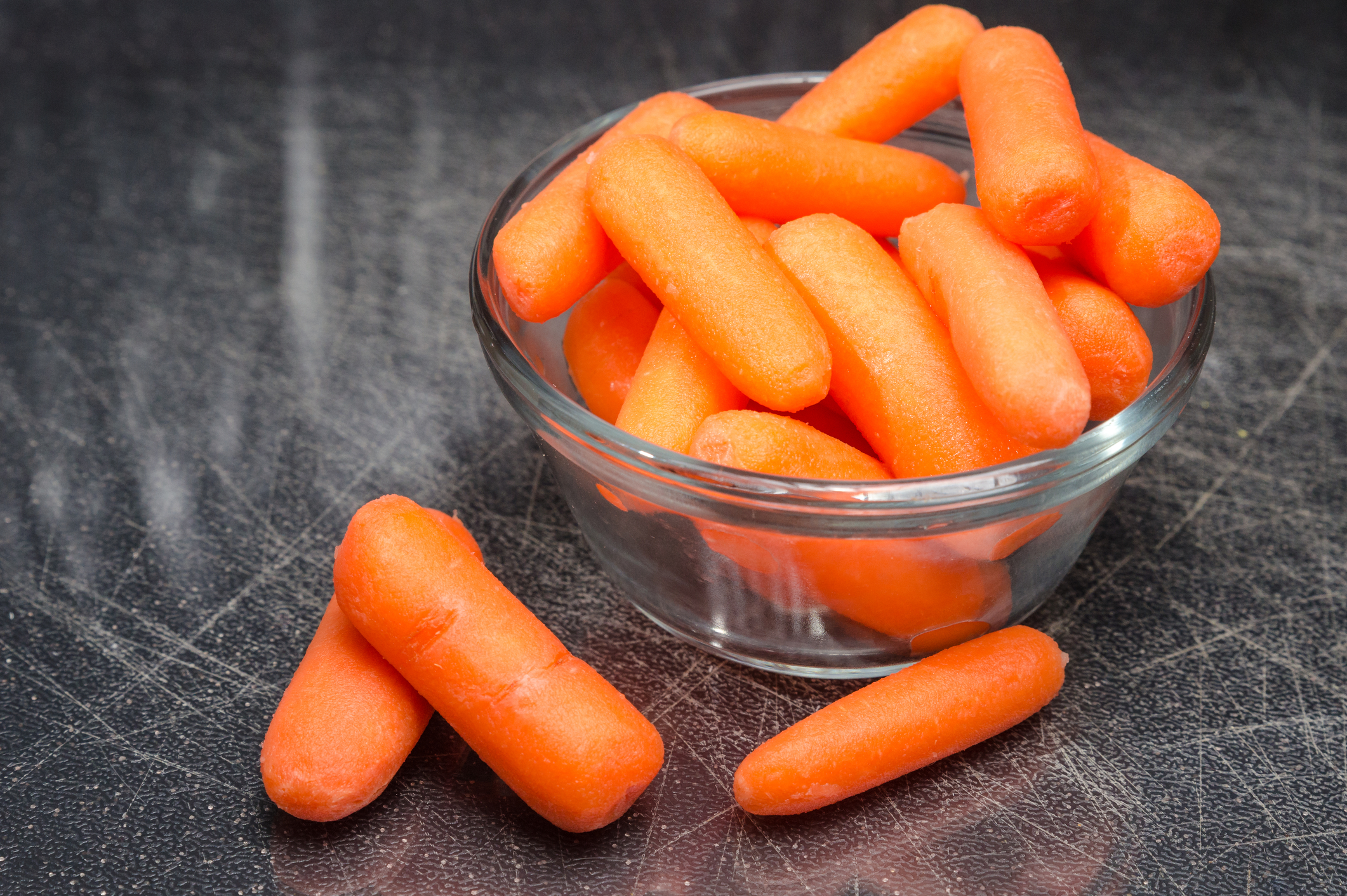 The phrase “baby carrots” is a bit of a misnomer. True baby carrots are just small carrots. If you’ve ever had a garden and pulled a carrot out before it was fully mature, that would be a baby carrot. What we’re talking about here are “baby-cut carrots,” but since everyone calls them baby carrots, that’s what we’ll do too.