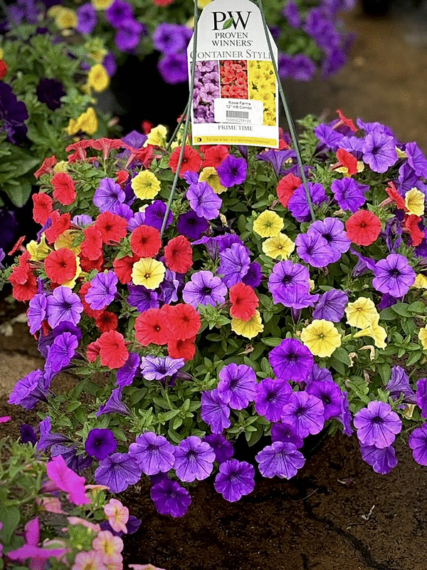 A recent post showed what was headed to Houston: A Proven Winners recipe called Prime Time was front and center making my heart race. Prime Time features three award-winning Supertunia petunias: Mini Vista Indigo, Mini Vista Scarlet and Mini Vista Yellow. Those three petunias represent 69 awards so you can imagine this basket will be flying off the shelf at its retail destination in Houston.
