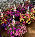 Rowe Farms has more designer baskets than you could dream of. One other that left me mesmerized was one called Nightingale. This mix is simply stunning, as it features Supertunia Vista Jazzberry petunia and two Superbells calibrachoas, Dreamsicle and Honeyberry.
