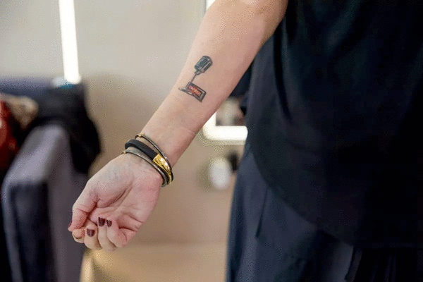 Althouse had never considered getting a tattoo until shortly before a trip to Italy this May with her husband and two sons, Ethan Wallace, 29, and Xander Wallace, 27. Ethan is heavily tattooed and had "hounded" her for years to get one, but she had zero desire. Then, several weeks before the trip, involved with caretaking responsibilities and trip-planning, the idea somehow, suddenly, made sense. She found an image of an "old timey" radio microphone and "on air" sign and brought it to a tattoo studio in Rome she'd admired the work of online. The artist Giorgia Mastrosanti tattooed it onto the inside of her right forearm, a discreet but still noticeable spot.