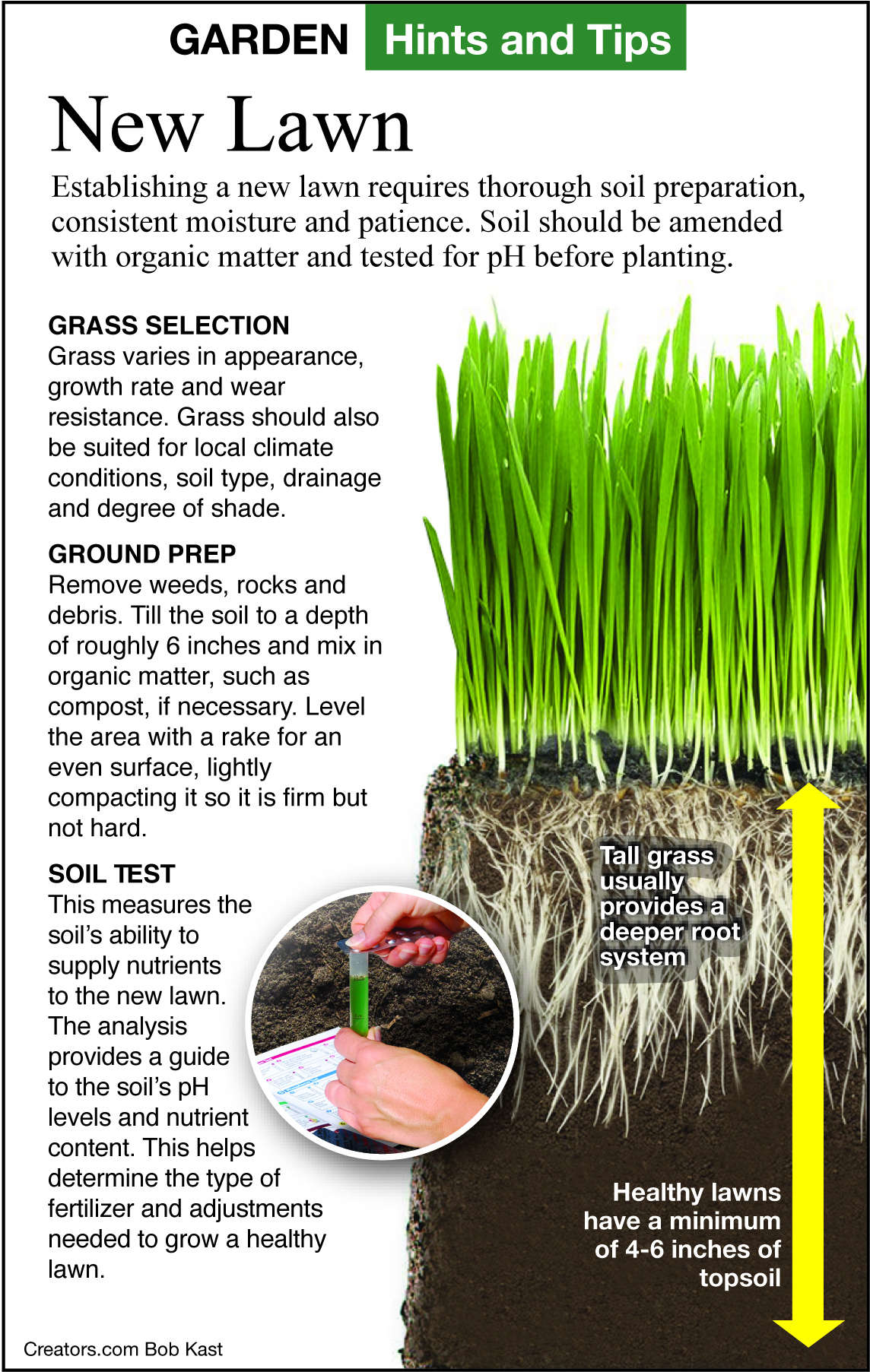 Having a successful lawn depends on having good soil -- and the more topsoil, the better. If your house is under construction, ask for as much topsoil as you can get, because you will only get one chance for this critical growing medium. Testing the soil's nutrient analysis and acidity (pH) before planting allows amendments to be added to correct deficiencies. Use a starter fertilizer at the package recommended rates.