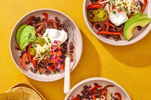 While eggs offer plenty of protein, you can make a satisfying, high-protein breakfast without them. This breakfast bowl includes black beans, yogurt and Monterey Jack cheese, providing plenty of protein to keep you feeling full and energized throughout the morning.
