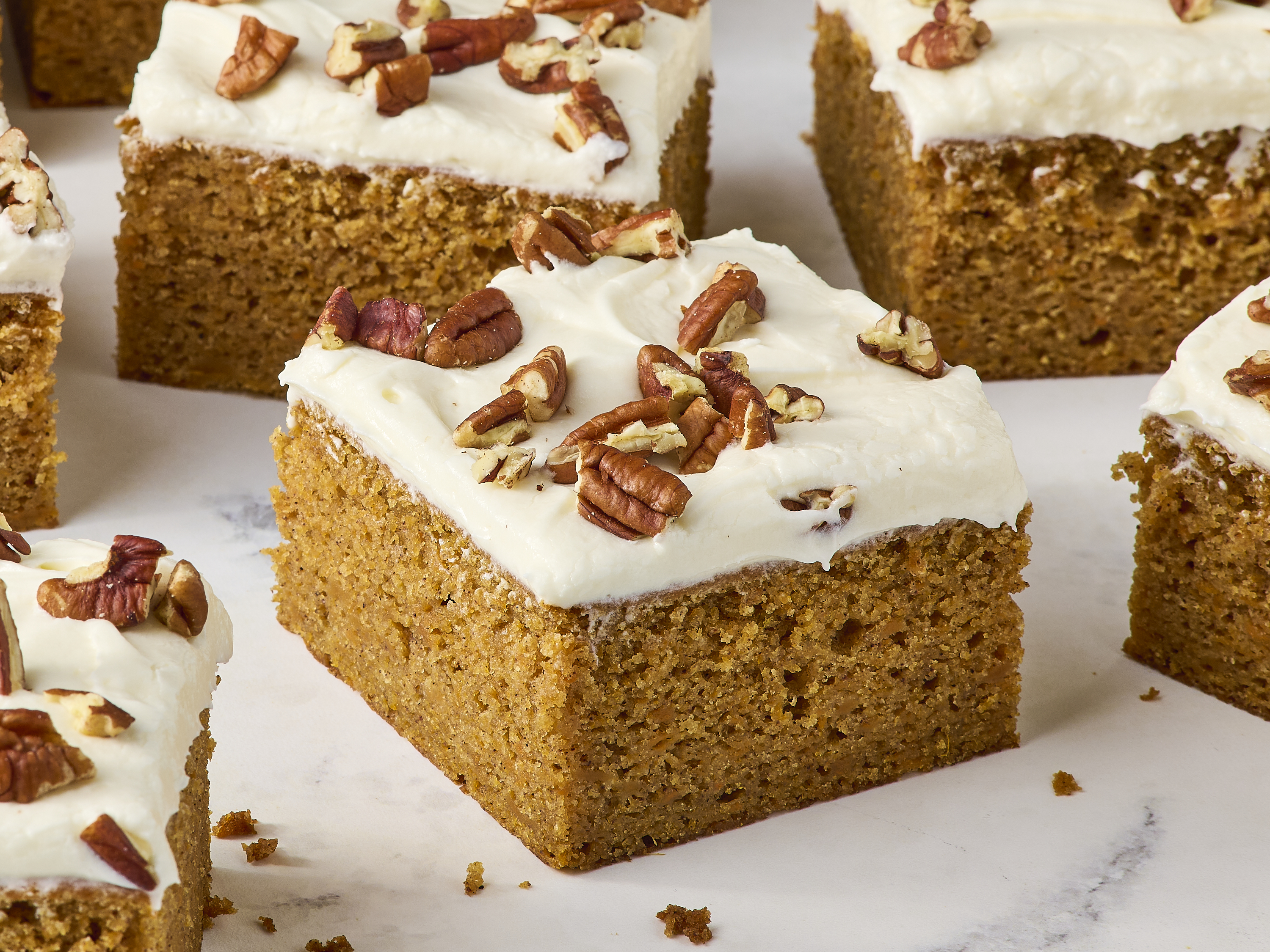 I’m the designated baker in my friend group, and throughout fall I make a sweet potato sheet cake because it’s quick, easy, and feeds a crowd. Cream cheese frosting adds a nice zesty, creamy contrast to the cake. Sweet potatoes are sweet and earthy, and when cooked and added to a cake batter they lend structure and moisture, and make for a delicious not-too-sweet treat. Add a bit of cinnamon, ginger, and nutmeg? It’s fall in a cake.