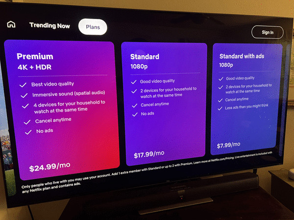 There is also a subscription level that includes 4K streaming and the ability to watch four streams at once for $24.99.