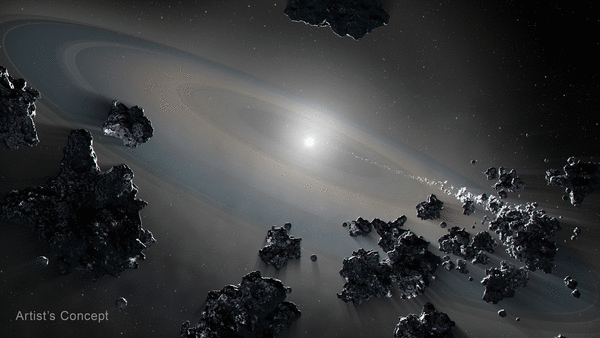 “We don’t really know if these rocks being pulled in are big,” Debes said, “like the dwarf planets Ceres or Pluto in our solar system, or small things like asteroids or comets being perturbed in outer orbits and pulled in.”