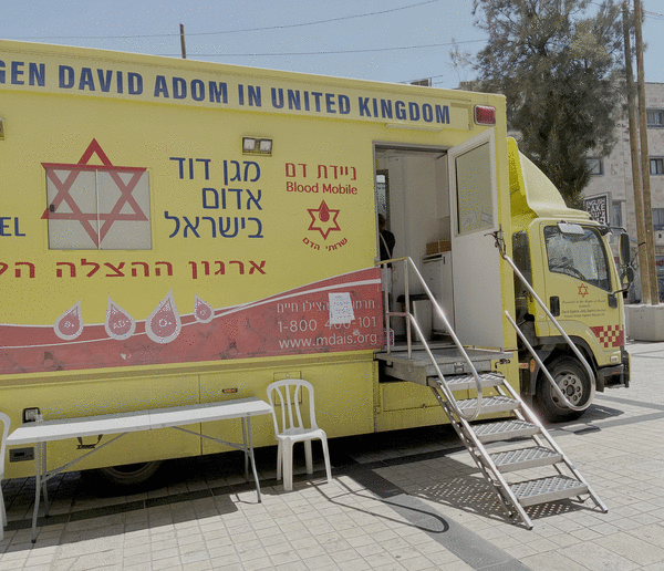 Our first attempt, on my birthday, did not go well. Magen David Adom does not let tourists book appointments in advance, and we had little sense which draw station was the best bet for walk-ins. Plus, it was a Friday, a half day for many Israelis readying for Sabbath. Getting around was further complicated by the frequent sirens and protests that snarled traffic. Locals suggested we try the bloodmobile parked outside the department store in Jerusalem.