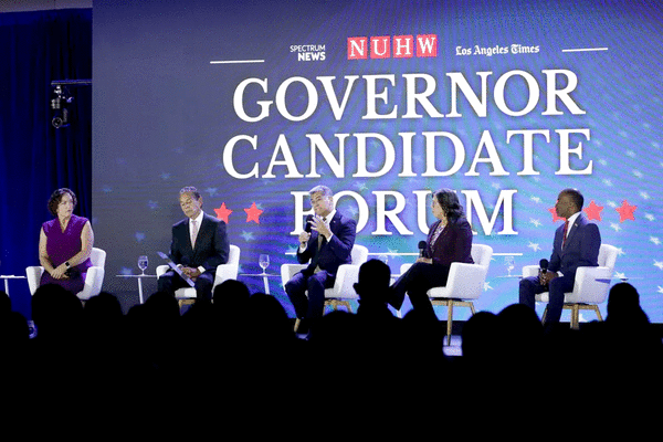 The forum was sponsored by the National Union of Healthcare Workers, in partnership with the Los Angeles Times and Spectrum News. It was held in Los Angeles and moderated by Associated Press national planning editor Lisa Matthews, with L.A. Times California politics editor Phil Willon, Spectrum News 1 news anchor Amrit Singh and Politico senior political reporter Melanie Mason asking the questions.