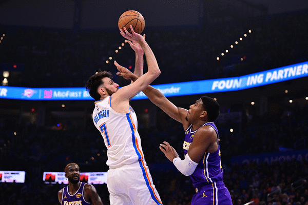 The Thunder (12-1) held the Lakers without a made field goal for almost eight minutes to start the second quarter. The lead ballooned to 32 as Oklahoma City doubled up the Lakers 64-32 with a three-pointer from Isaiah Joe with 2:10 remaining in the first half. The Lakers (8-4) scored just 38 points in the first half.