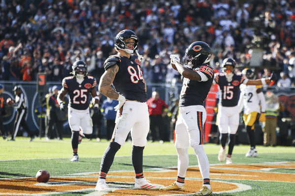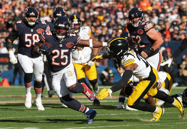 The Bears offense overcame two turnovers of its own in the first half, including a strip-sack in its end zone. Steelers star pass rusher T.J. Watt was credited with the sack as Williams lost the football, and edge rusher Nick Herbig jumped on it for a touchdown.