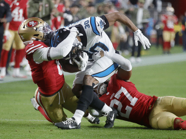 Now, let’s sprinkle in the requisite grain of salt here. Fellow cynics would look at the schedule and point out the obvious: it’s easy to be a safety when you’re playing against Bryce Young and Shedeur Sanders, two quarterbacks who cannot challenge defenses deep. When you have two strong safeties, like Mustapha and Brown, who want to get into the box and thump — and who face questions about their deep coverage — you don’t have to worry much about being burned over the top. (You can’t tell me that general manager John Lynch, a Hall of Fame safety and world-class hitter, hasn’t inserted some opinion into the matter of who to play and seems determined to build a secondary in his own image.)