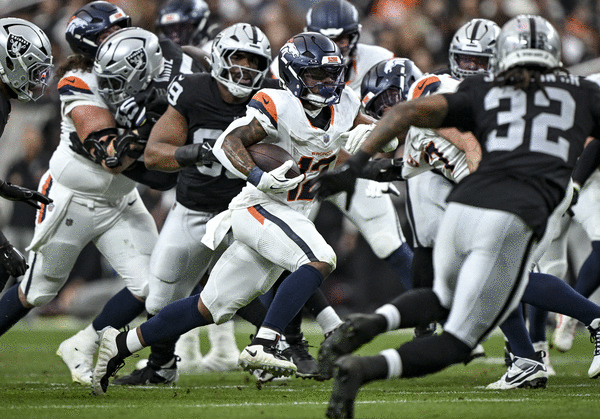 — Mims the word: Marvin Mims Jr. is not a returner. He is a playmaker. Since his return from a concussion, he has impacted the game on special teams, turning a team concern into a strength. Even as a two-time All-Pro, he pulled off a first. Mims delivered his first punt return for a touchdown Sunday on his 69th career attempt. It was a bit unconventional given his skillset. The Raiders had him surrounded as he caught the ball, appearing corralled. Then he bounced out to the left and followed a convoy into the end zone, aided by a last crushing block by JL Skinner on punter A.J. Cole. Mims ripped off a 70-yard return against the Chiefs in the first quarter, setting up an important field goal in a one-score game. Mims is averaging 16.4 yards on punt returns this season after leading the league with 15.7 yards per clip a year ago.