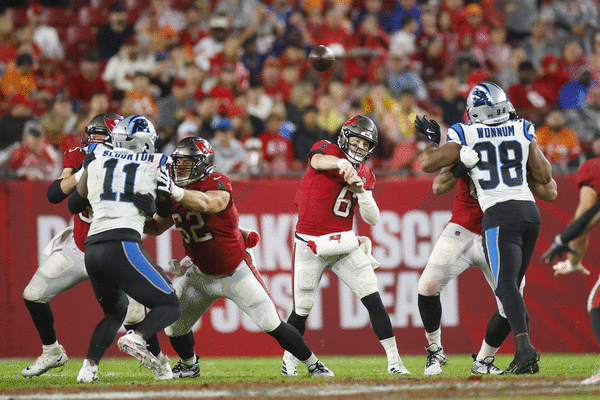 At this moment, the Bucs and Panthers are tied atop the division with identical 8-9 records, but Tampa Bay has the tiebreaker advantage. If the Falcons also finish 8-9, Carolina would win a three-way tiebreaker and Tampa Bay will miss the postseason for the first time since 2019.