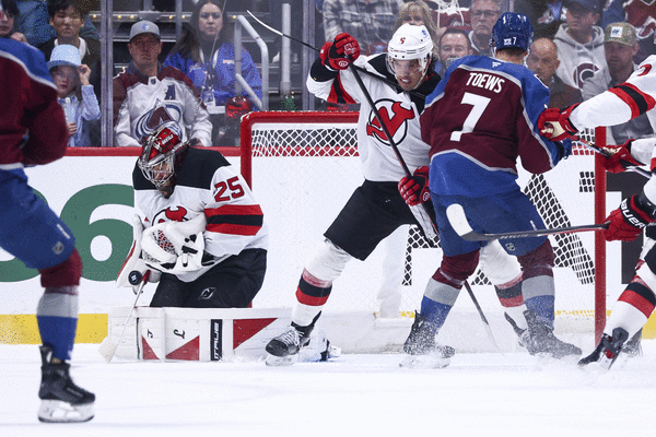 A few minutes later, this one looked like a laugher. MacKinnon scored on a one-timer during a 5-on-3 at 7:11 to make it 4-0. Then Parker Kelly got behind the New Jersey defense and tucked a backhanded shot past Jacob Markstrom at 8:39.